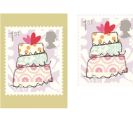 The design, featuring a hand-drawn three-tier wedding cake, topped with two colourful hearts, was chosen by Royal Mail to feature as part of their Smilers 2015 First Day Cover Collection, celebrating special occasions and achievements such as weddings, anniversaries, births and birthdays.
