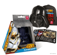 The range includes two specially designed card packs, the first illustrated with stills from episodes I to III and the second with stills from episodes IV to VI. But that’s not all. For superfans there’s a gift box uniquely designed in the shape of a Darth Vader mask housing a set of specially illustrated playing cards telling the story of the feared villain himself.