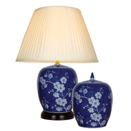 Pictured here are the BaiMei pieces styled on a Qing dynasty design of winter-flowering plum blossom on a traditional 'winter melon' jar. By reversing the more common blue on white pattern, the artist has picked out the white flowers to great effect against the rich blue background.