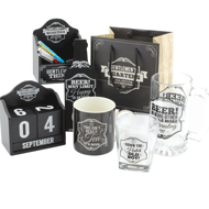 The range consists of quality items in the form of social stationery and housewares - pint glass, short tumbler, bottle opener ie a Topper bottle shape, as well as personal items - manicure, show clean, memo pad and pen, gift bag, note book, organiser, storage box, coasters, travel mug, hip flask and the essential phone holder.