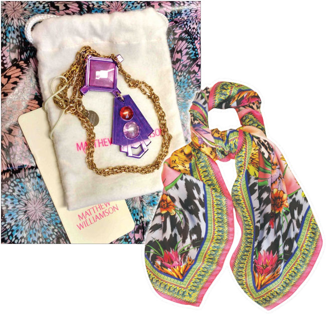 The first name drawn will receive a Matthew Williamson Tropical Leopard Pring DNA Scarf and the second name drawn out will win a Matthew Williamson necklace.